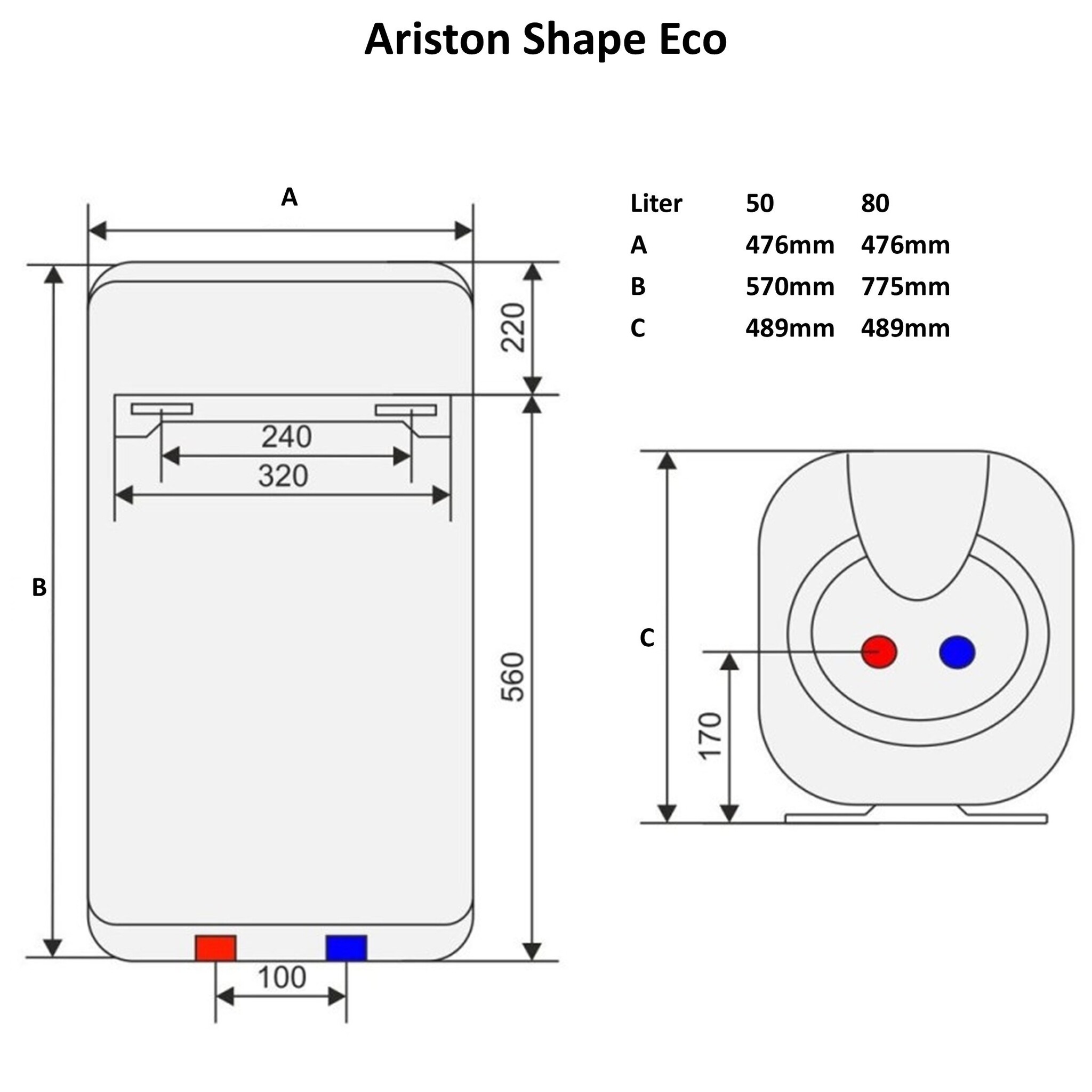 Ariston elektrische boiler, Shape Eco Evo - 50 en 80 liter, 1800 watt met eco functies