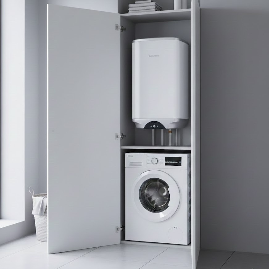 Dankzij het compacte, vierkante ontwerp kan de Ariston Shape Eco EVO eenvoudig worden geïnstalleerd, zelfs in kleinere ruimtes zoals keukenkasten, bergruimtes of badkamers met beperkte plaats.