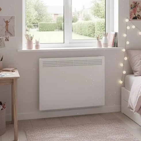 Elektrische verwarming Bluetooth Beha met handmatig bedienbare elektronische thermostaat met aan / uit schakelaar.