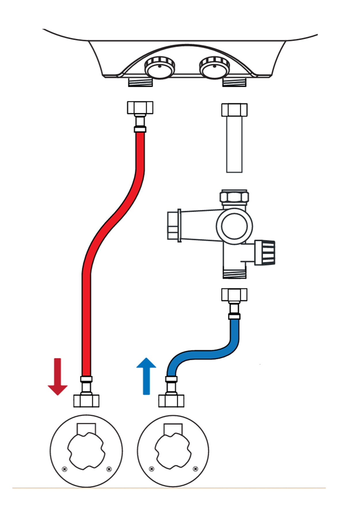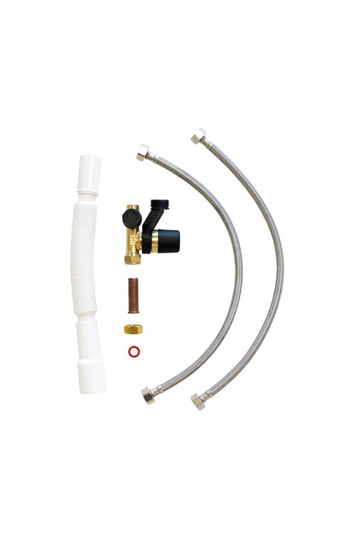 Boiler aansluitset, Basis - 2x flexibele slang, inlaatcombinatie, afvoerslang en aansluitbuis boiler