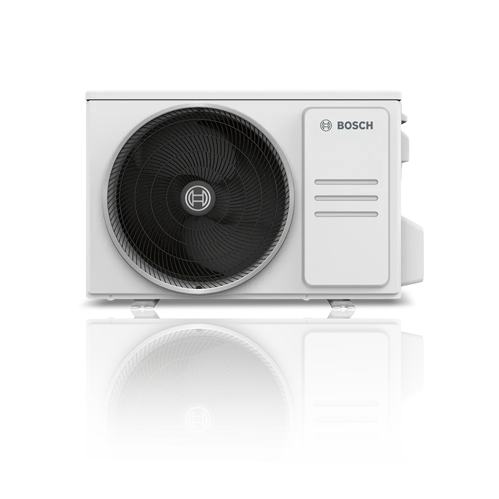De Bosch Climate 3000i haalt warmte uit de buitenlucht en gebruikt deze om je ruimte te verwarmen. Zelfs bij lage buitentemperaturen blijft het systeem efficiënt werken.