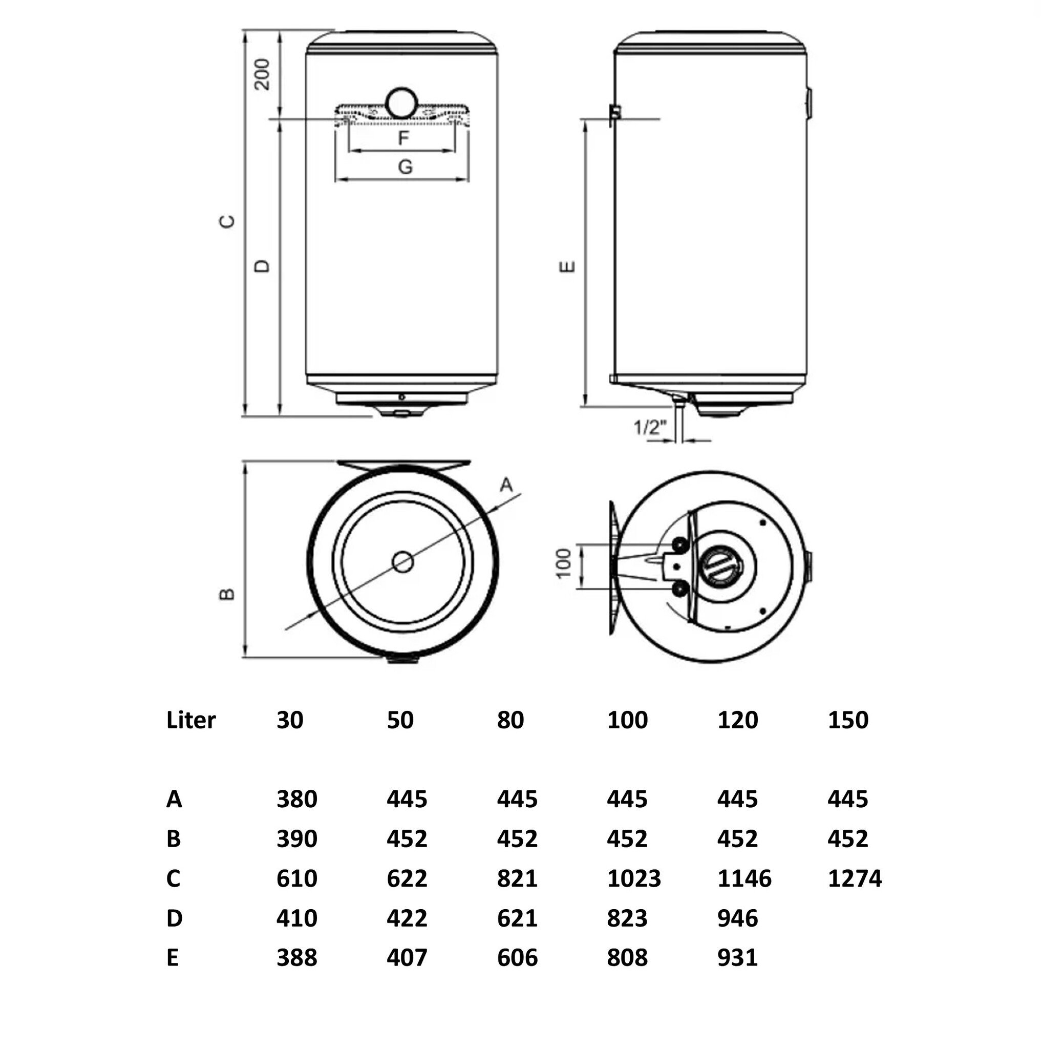 De Tronic 1000T is verkrijgbaar in meerdere inhoudsmaten, zodat je altijd een model kunt kiezen dat past bij je woning en je gezin. Je kunt kiezen uit 30, 50, 80, 100, 120 of 150 liter. Zo bepaal je precies hoeveel warm water je nodig hebt, zonder onnodig energie te verspillen.