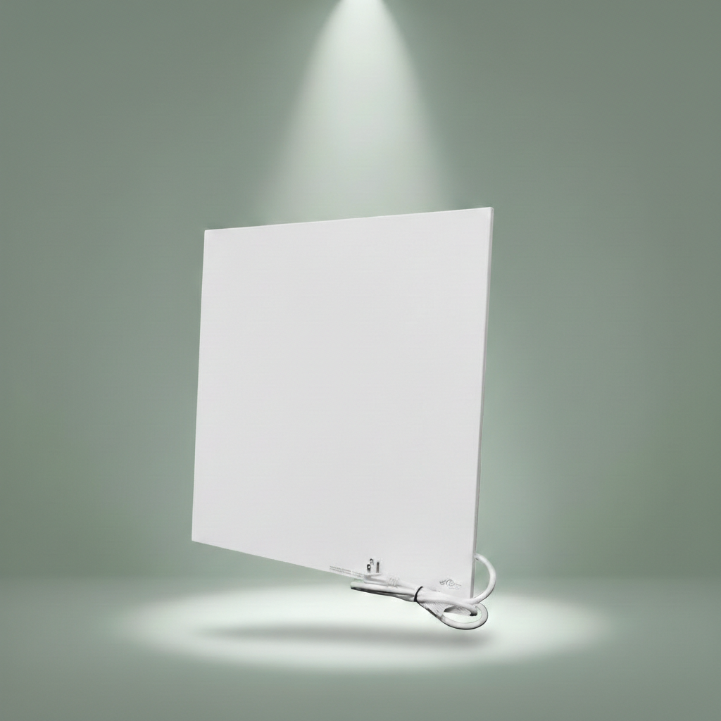 PTC staat voor Positive Temperature Coefficient: het elektrisch vermogen neemt toe naarmate de weerstand stijgt bij lagere temperaturen, en vermindert automatisch zodra de ideale bedrijfstemperatuur is bereikt. Bij het inschakelen levert de Comfortscreen PTC tijdelijk extra vermogen om snel op temperatuur te komen. Daarna schakelt het paneel zelf terug naar een lager, stabiel verbruik.