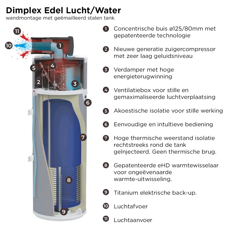 Dimplex Edel 150 AIR warmtepompboiler – uitleg, specificaties & advies