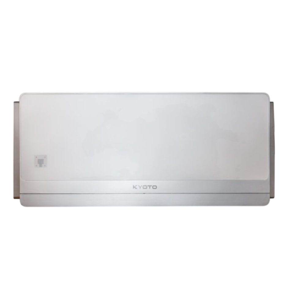 De Kyoto werkt volgens het monoblock-principe: alle onderdelen, zowel het koelgedeelte als het verwarmingsgedeelte, zitten in één behuizing die in de binnenmuur wordt geplaatst. Er is geen aparte buitenunit vereist. De unit wordt bevestigd via twee gaten van 200 mm in de buitenmuur en werkt vervolgens op een standaard stopcontact.