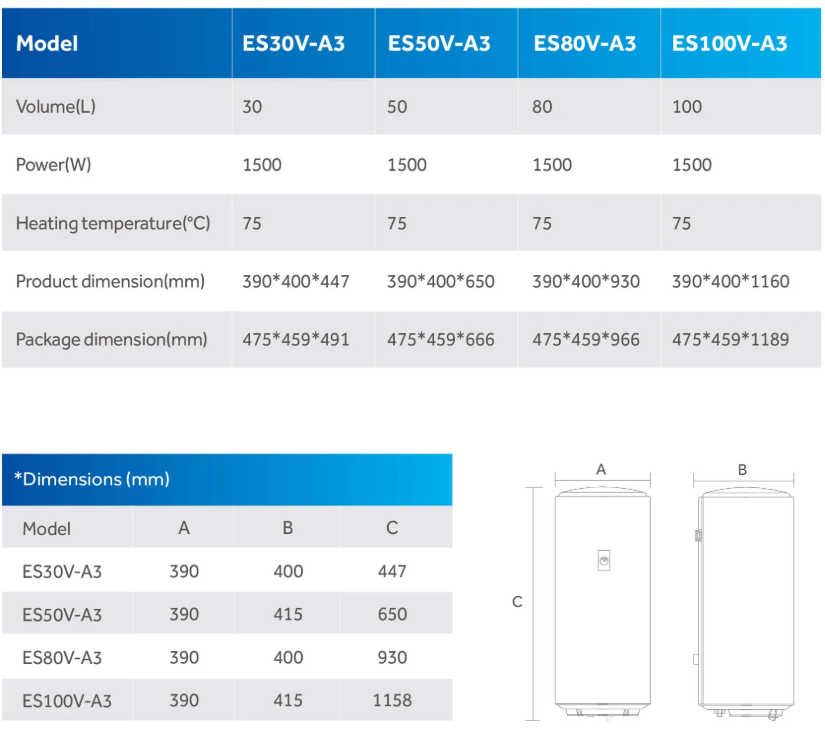 De Haier A3 elektrische boiler is ontworpen voor huishoudens die een stabiele en eenvoudige warmwatervoorziening zoeken. Deze serie van Haier biedt een praktische oplossing zonder complexe digitale functies. Met meerdere inhoudsmaten is er voor elke situatie een passende uitvoering.