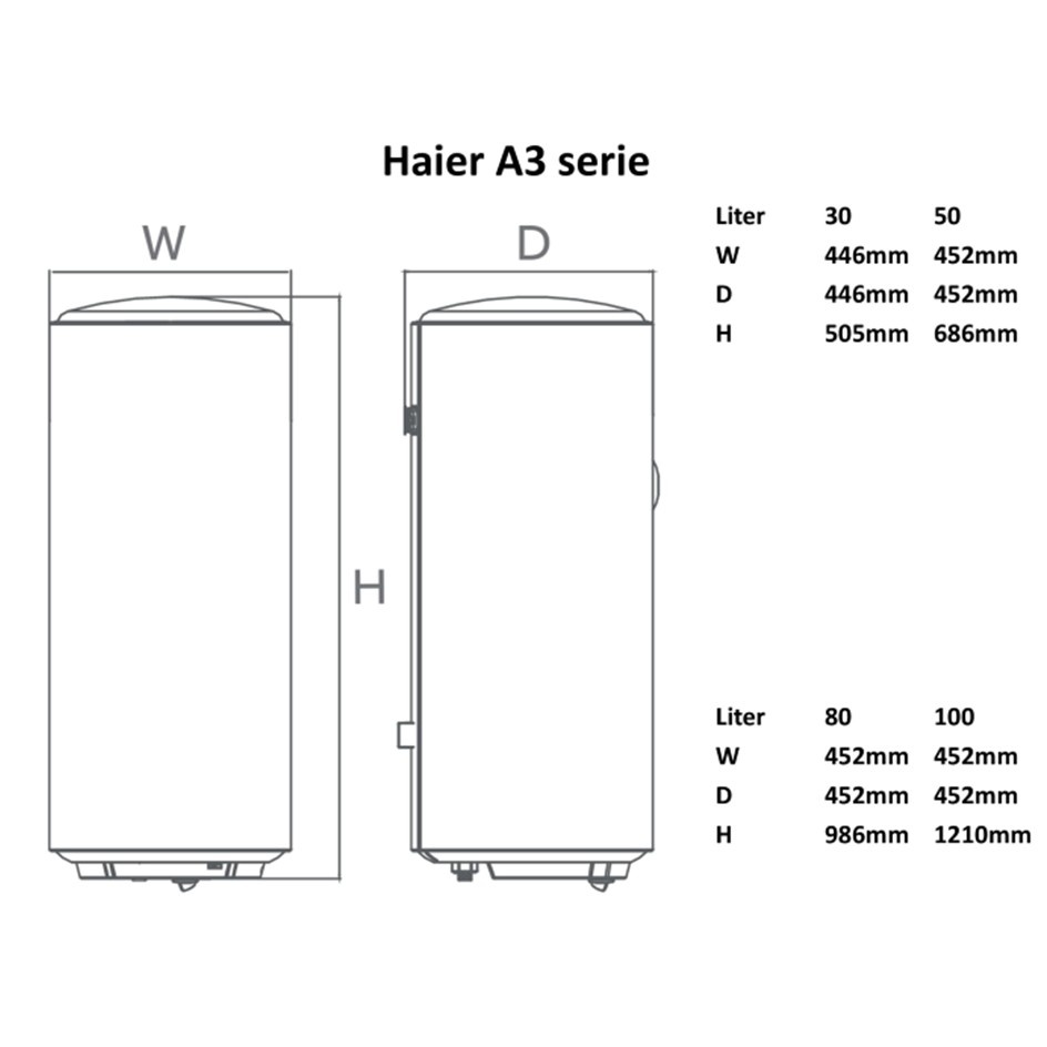Haier elektrische boiler, ES-V-A3(EU) - 30 tm 100 liter, 1500 watt met analoge bediening - Copy