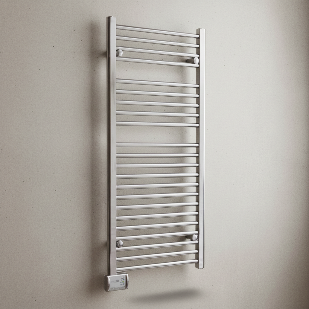 De chroommodellen werken volledig elektrisch. Je hebt dus geen aansluiting op de centrale verwarming nodig. Je monteert de radiator eenvoudig met de meegeleverde bevestiging set en steekt de stekker in een 230 volt stopcontact. Meer is het niet. Dankzij de IP66 bescherming blijft de radiator veilig en betrouwbaar, zelfs in vochtige badkamers waar water en stoom dagelijks aanwezig zijn.