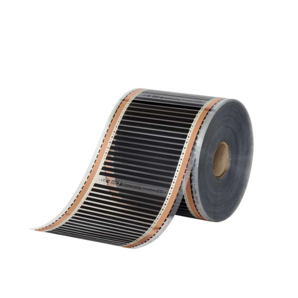 Infrarood vloerverwarmingsfolie, 50cm breed - 100w/m2 - met gesoldeerde VMVL aansluitkabel a 100cm