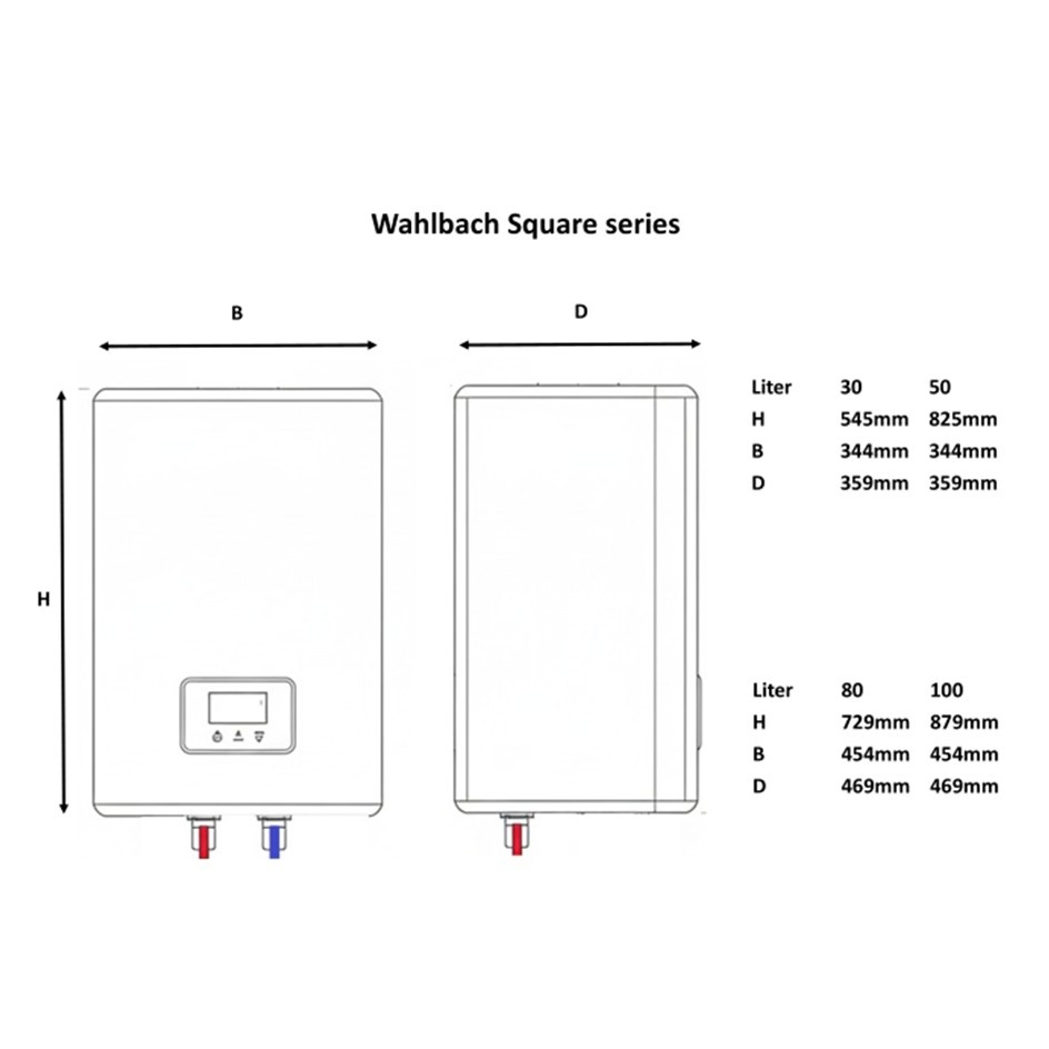 Wahlbach elektrische boiler, Square - 30 t/m 100 liter